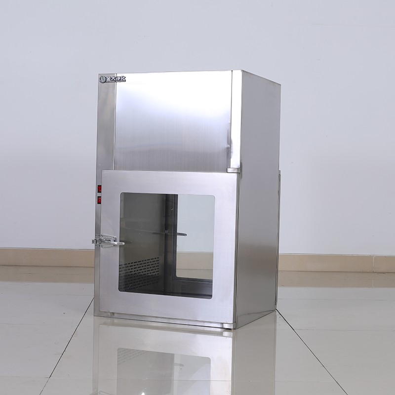 3. Vyčistite prepravné okienko: Otvorte jedny z dvierok, vložte tovar do prepravného okienka, zatvorte obe dvierka a zapnite spínač ventilátora. Po zaznení zvuku ventilátora bude čistenie vnútorného vzduchu trvať asi 5-30 minút.